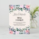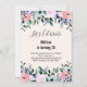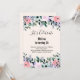 Födelsedagsinbjudan med en vacker blommig design gjord med akvareller. Rosa, lila och gröna trädgårdsblommor.