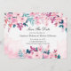 Rosa Lila Grönt Blommigt Watercolor Bröllop Spara Datumet
