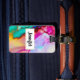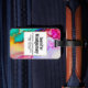 Personligens bagagetapp med en finare-konstnärlig abstrakt utformning. Vattenfärgning med färg blandning och sammansmältning skapande en fin, flytande marmorerad mönster. Ett vitt ram med en faux-guld-folie gräns överst med personligen inskriven.