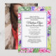 Inbjudan till studentfest av tropiska blommigtar via DIY-rosa, lila och grönt. Lägg till fotot på baksidan.