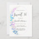 En modern inbjudan till Sweet sixteen, snyggt och elegant med ett fjärilstema med en boho ram och en handmålad, vattenfärgad fjäril i lila, rosa och blått nyans, guld och en sprinkle av guld (detta är också en digital effekt, inte en riktig folie), med en bubblegum rosa tillbaka.