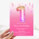 Rosa lila guld folie ballong flickor 1-års födelse inbjudningar