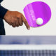 Mjuka, giftiga och feminina nyanser av djup lila i vågrät rand. Från mörk rosa till djup lila. Anpassa med ditt namn, vit brev skrivet med ett modernt handskript i stil.