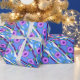 Omslagning papper i en rosa blommigt och blå med lila bakgrund som kan växlas till vilken färg som helst för att komplimentera stil, presentfigursättning som passar för alla särskilda tillfällen.