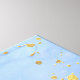 En abstrakt utformning med känsliga kvistar av rosa, lila och blåalkohol bläck på en benvit/blek grått-bakgrund, förskjuten med ett metallöverlägg guld.