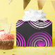 Lila hjärtan inuti rosa, lila och vita snurrar mot svart bakgrund gör att denna gåva som omsluter papper perfekt för Valentines day, Bröllop eller något speciellt tillfälle.