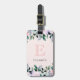 En bagagetagg med söt blommigt utformad med vattenfärger. Rosa, lila och grönt blommor.
