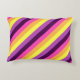 En accentkudde med en söt, färgstark mönster-utformning av diagonalt rand i lila av plommon, lavender, citrongult, melonorange och ljus magenta.
