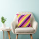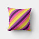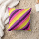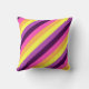 En 16-tums x 16-tums dekorativ kudde med en söt, färgstark mönster-design av diagonalt rand i plommonlila, lavender, citrongult, melonorange och ljus magenta.