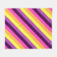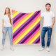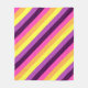 En medelstor filt av fleece med en söt, färglös mönster-utformning av diagonalt rand i lila av plommon, lavender, citrongult, melonorange och ljus magenta.
