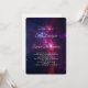 En bröllopsinbjudan med en fantasifull bild av det kosmiska rymden med stjärnor och böljande nebulosa.