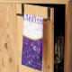 Kökshandduk med finare och elegant. Bakgrunden består av rosa och lila mousserande glitterstenar. Trendig och feminin vibe. En cirkel med faux-guld-foil gräns överst med ditt monogram initialt och namn inuti.