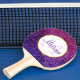 Pingpongpaddel med finare och elegant. Bakgrunden består av rosa och lila mousserande glitterstenar. Trendig och feminin vibe. En cirkel med faux-guld-foil gräns överst med ditt monogram initialt och namn inuti.
