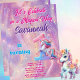 Gör din dotters första födelsedag oförglömlig med den här fantastiska encorn-inbjudan! Den här designen har en drömmande pastellbakgrund och en lila galaxbakgrund med skuggande stjärnor och en söt unicorn. Teckensnittet i eleganten lägger till en aning sofistikering, medan det färgstarka regnbågsnumret ett lägger till en lekfull inslag. Anpassa inbjudan med dina party-uppgifter om ett verkligt unikt och magiskt firande. Den här inbjudan är perfekt för en enhörningsfråga första födelsedagsfest som dina gäster inte kommer att glömma.