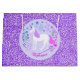 Den här presentsäcken har en söt Unicorn-design med faux lila glitter bakgrund. Anpassa det med namn.