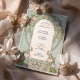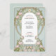 Den här gigantiska bröllopsinbjudan visar mjuka rosor, ömtåliga vita blommar och pastelllöv som vävts in i ett ornat Art nouveau ram. Blommigtens utformning radbryts runt mitttexten i en förfinad skiftnyckel och ställs in försiktigt mot en bakgrund med mjuk grönt. Inspinerad av 1900-talets dekorativa elegans, framkallar de komplicerade detaljerna kring gräns och den monogrammade bakgrunden en känsla av tidlös romantik. Perfekt för vår bröllop, trädgårdsceremonier eller älskare för estetik i blommigtens vintage. Anpassa inbjudan till ett bröllop firande som blomstrar med konstnärlig charm.