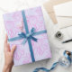 Rosa Line Drawn Flower Mönster på Lila Papper Presentpapper