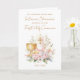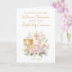 Denna design har en akvarellillustration av en guldfärgad kalk med ett ljus, omgiven av små rosa och vita blommor.