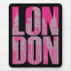 Den rosaLondon designen inkorporerar tre grafiska återgivningar av stora Ben i ett ljust - en högväxt, sätta en klocka på och ljus rosa stilsort för grå färgfärg, på. Breven, som stavar ord London, staplas. Visa din kärlek för London med den rosa London designen.