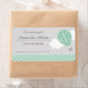 Bokskyltetikett med luftballong av mynta grönt och polkadot-bakgrund.