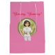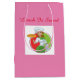 Den här söt rosa presentsäcken för lunch har en Woman-kock på framsidan och en annan kvinnokock med en öken på baksidan. Perfekt för Lunch time. På framsidan har ord att Lunch är Served och baksidan har ord Yummy, Yummy i rött. Bra till mannen som packar sin lunch.