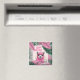 Rosa Lycklig Smiling Lama, den här utformningen har en söt och vacker Rosa Lycklig Smiling Lama omgiven av tropiska blommor från grönt handflatan träd och rosa.