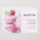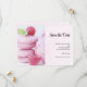 Spara datumkortet med ett utsökt foto med en torn av rosa makaroner med hallon placerade runt. Det är en underbar gudomlig.