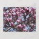 Vykort med foto av rosa magnolia blommor/blommar mot blå himmel