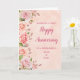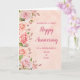 Lycklig-bröllop-årskort för mamma och pappa med elegant-rosa-rosor och vår-grönenergi, med faux ro guld mönster.