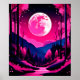 Upptäck den fantastiska tecknad konstens fantasi-inspirerade stil (denna design är gjord med AI), en rosa måne utanför en mörk och vacker skog. Ställe beställer i dag och Kämpa på köpet!