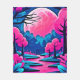 Fördjupa dig i en drömlik rosa paradis med denna fängslande konstverk som visar en full rosa måne som lyser upp en frodig skog med livfulla rosa träd och en slingrande flod (Denna design är gjord med AI). Beställ idag och omfamna glädjen av shopping!