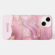Modern rosa och vitt flytande marmor med guld glittrande kant