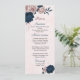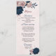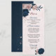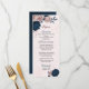 Den vackra dammiga ro och marinen blåa blommor och elegant lämnar botaniska menyn bröllop. Kortets baksida: elegantens rosa lever på en marin blå bakgrund Uppgifterna i glitter simuleras