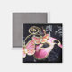 Tillsätt en touch av mystik och elegans i ditt rum med denna fantastiska rosa maskeradmask i form av en fyrkantig magnet. Med intrikat gulddekor och en delikat fjärilsaccent fångar denna design den förtrollande charmen hos en venetiansk maskerad.