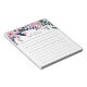 anteckningsblocket för blommigt av chic har en överkant gräns av rosa och blommor, knoppar och mörk grönt botaniska ämnen. Anpassa med två linjer anpassningsbar text i modern stil, som visas med Fransken hälsning bonjour och ditt namn. Längd.