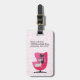 Bagagetaggen är vit med vibrant rosa polka dots och en stil stol i mitten av århundradet med två söta katter, en svart och en vit sitta tillsammans. Anpassa texten längst fram och bakåt.