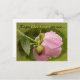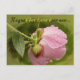 En väldigt våt pion, bladen glittrar av vattendropar. Texten på ramsidan säger "Regnet det bara öser ner.." - manar pionblomman trivs! Färgerna på kortet går i ljus en rosa och gröna toner, det ser ut att scht och sjukhusut. En lyssna myra spatserar på ett av pionbladen. Man kan ändra på texten på sidan av kortet, skriv över texten under rubriken "Anpassa".