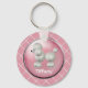 Rosa med vit Pudel Nyckelring