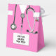 Kreativ doktor eller sjuksköterska party favors som innehåller rosa sjukhusbuskar. Redigera text som du vill anpassa.