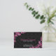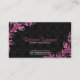 Elegant rosa metall blommigt snöre snurrar över svarta blommigtar mönster, visitkortsmall. För händelsedesigners, bröllopsfixararna