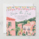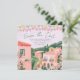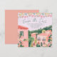 Denna destination bröllop Save the date har målad konst av en mexikansk stadsscen med papel picado-banderoller överst. Alla viktiga detaljer om bröllopet kan anpassas. Färgerna inkluderar grönt, rosa, vitt och korall.