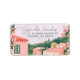 Denna etikett för returadress har målad konst av en mexikansk stad. Färgerna inkluderar grönt, rosa, vitt och korall.