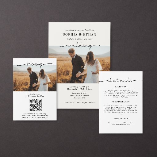 Rosa - minimalistskript QR-kod Foto Bröllop OSA Kort