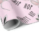 Rosa Modern Bunny Öron Påsk Cute Girly Muffinss Wrapping Papper har söt öron med muffinsar och texten "Hippity Skutt" i modern svart skrift på rosa. Perfekt för flickor till Påsk och födelsedagar.