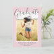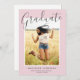 Denna moderna inbjudan från studenten är ett snyggt för att tillkännage era spännande nyheter. På framsidan av tillkännagivandet i studenten finns en kalligrafisk text som lyder "Student" ovanför ett stort foto av student, allt mot en rosa. Lägg till student namn, skolan och studenten under fotot. På baksidan av inbjudan till studentfesten lägger du enkelt till party-informationen i den angivna mallen.