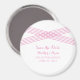 Enkel och elegant Modern Deco Spara datum magneter med en stripe-kor-skrafferad konsthugg i rosa. Det här klassiska spara datum magneter kan enkelt anpassas med dina bröllop-uppgifter. Om du vill ha fler anpassningsalternativ klickar du på knappen Anpassa.