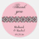 Rosa Modern Geometric Stil-klistermärken med fuchsisk bakgrund, det finns ett geometriskt stil rosa och svart mönster som går tvärs över mitten. "Tack" skrivet med svart kursiv stil och under mönster finns namn om paret och datumet bröllop. Ställe din beställning i dag! Sticker Design: WedingsbyRhoadie Artwork: AMBillustrations http://www.etsy.com/shop/AMBillustrations/