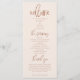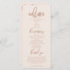 Modern minimalistiskt bröllopsprogram med boho-skript. rosa med texten om terracotta färg. Alla ceremonier i bröllop och bröllopsfestens namn som finns med på detta program.