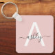 Rosa Modern Script Girly Monogram Namn Nyckelring