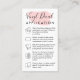Ta med dig det här moderna och minimalistiska vinyldekapplikationskortet, som har en rosa-penseldesign som säkert fångar öga. På kortets framsida finns utrymme för egen information om logotyp och anpassade, med ett handskrivet teckensnitt som gör att du får ett personligt tryck. På baksidan av kortet finns detaljerade instruktioner för hur vinyldekaler ska appliceras, tillsammans med användbara ikoner som leder dig genom de processaa. Oavsett om du är företagare, hantverkare eller någon annan som tittar för en unik och praktisk kortdesign är det här Rosa Modern Vinyl Decal Application Instructions-kortet perfekt för dig.